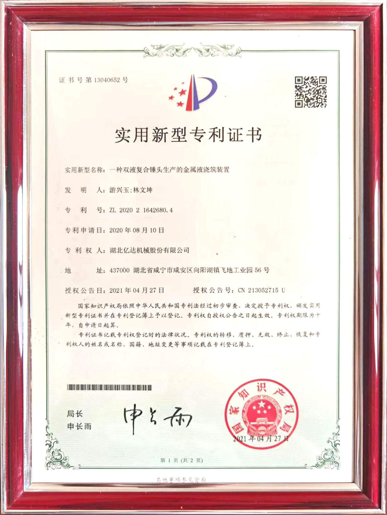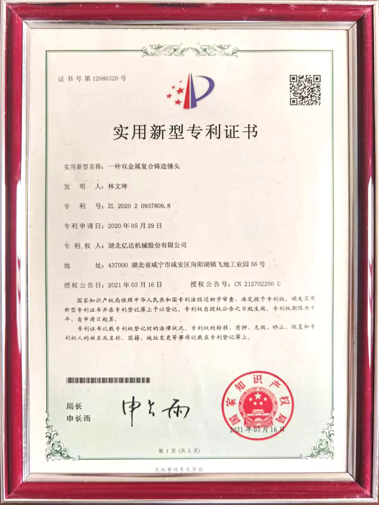 一种双金属复合铸造锤头