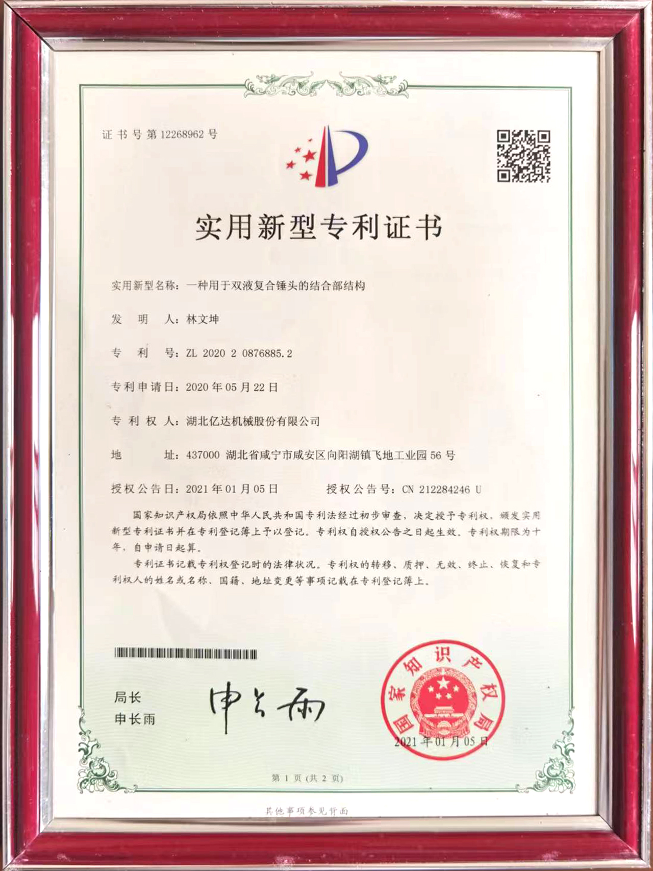 一种用于双液复合锤头的结合部结构