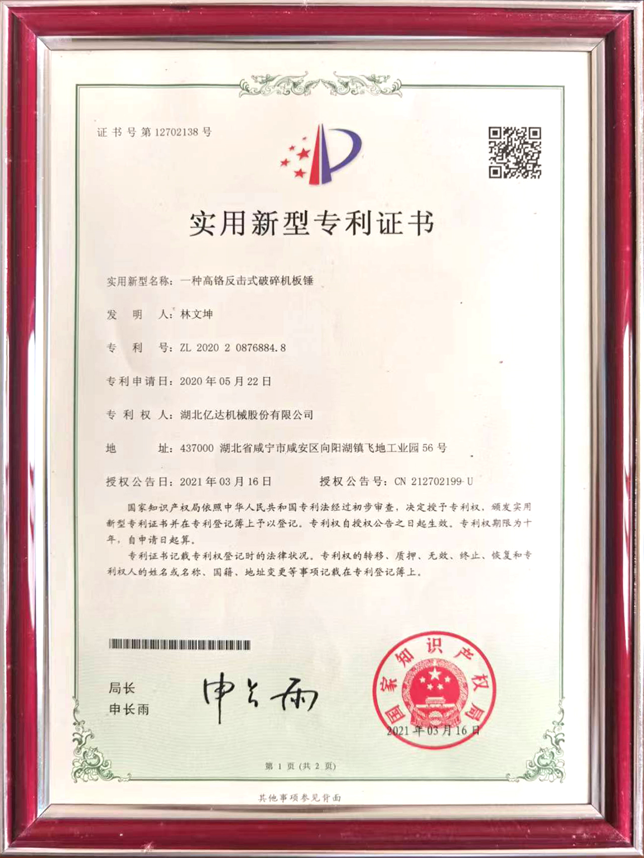 一种高铬反击式破碎机板锤